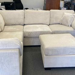 New! 106” Ivory White Sectional Sofa And Ottoman, Sectionals, Sofa, Couch, Ottoman, Beige Sectional, Corduroy Sectional, Plush Couch Sofa, Ivory White$479Fullerton, CA