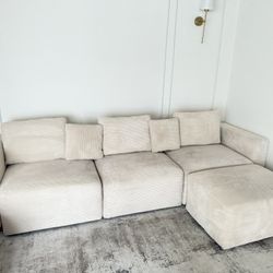 Modern Beige Modular Corduroy Sectional Sofa + Ottoman – Excellent Condition $1,500West Hollywood, CA