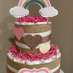 Two Tier Baby Girk Rainbow And Heart Diaper Cake Great For Baby Showers $40Whittier, CA
