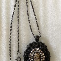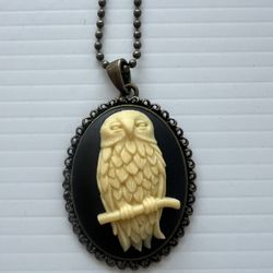 VTG Oval Shape White Owl Black Cameo Pendant. 17.5” Long $15Santa Fe Springs, CA
