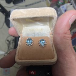 💎 14K Gold Blue Topaz & Diamond Halo Jewelry Set — Pendant + Matching Earrings$1,600Artesia, CA