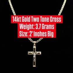 14kt Two Tone Gold Cross Pendant Dije Cruz De Dos Oros 14kt$400South Gate, CA