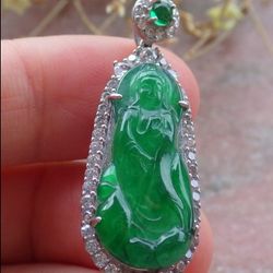 Certificate Jadeite Jewelry Jade Hand Carved Sterling Silver 925 Pendant Kwan yin$388Pasadena, CA