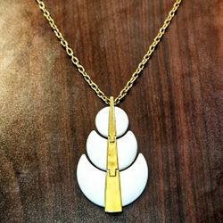 Vintage Signed Crown Trifari White Enamel Tiered Gold Tone Pendant Necklace 1960s$65Costa Mesa, CA