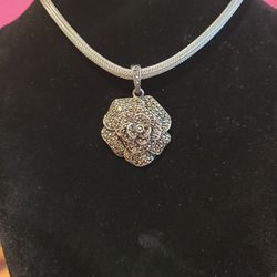 Sterling Silver Marcasite Rose Flower Pendant on Mesh Tube Sterling 17"+2" Chain F12 $80Diamond Bar, CA