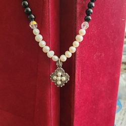 Classic Black and White Necklace Freshwater Pearl Black Onyx Faceted Beads Sterling Silver Square Marcasite Faux Pearl Pendant 18" Necklace F8 $35Diamond Bar, CA