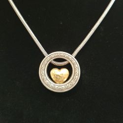 Brighton Reversable Round Ring Floating Heart Silver and Goldtone Pendant Necklace 16"+2" F8 $28Diamond Bar, CA