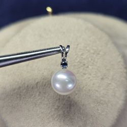 14k White Gold 7.5mm Pearl Pendant With Small Blue Sapphire $88Monterey Park, CA