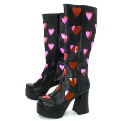 BRAND NEW SUGAR THRILLZ Dolls Kill Pink Clear Hearts Platform Go-Go Knee High Boots $50West Covina, CA
