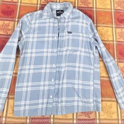 Hollister Men's Flannel Plaid Long Slave Shirt Light Blue Size L Pre-owned $8Fountain Valley, CA