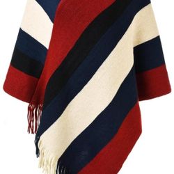 Women's Elegant Striped Poncho Tassel Knitted Sweater One Size$10Los Angeles, CA