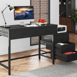 JW0838 Computer Desk with 5 Drawers, Home Office Desks with Reversible Drawer Cabinet Printer Stand, Industrial PC Desk with Storage, Rustic Study Wri$100Santa Fe Springs, CA