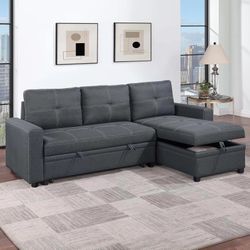 Studded Dark Gray Sofa Bed Couch 🛋️ Brand New In Box 📦 Pull Out Bed ✅ Reversible L ✅ Storage Underneath ✅ $350Garden Grove, CA