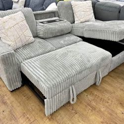 Light Grey Corduroy Sectional Sofa Bed with Storage, U-Shaped Sleeper Sofa, USB Charger, Two Storage Area, Large Size Sleeper, Pull out Bed, Convertib$899Anaheim, CA