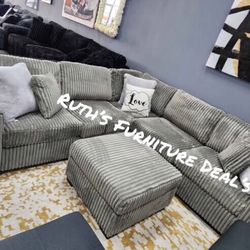$465 No Tax 3-Pc Corduroy Sectional Sofa With Storage Ottoman $465Glendale, CA