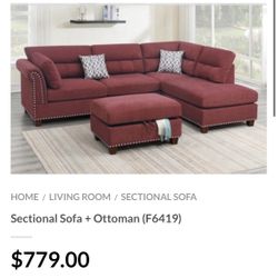 Red Sectional Sofa With Ottoman $779Glendale, CA