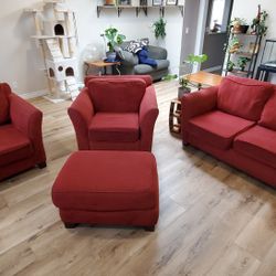 Red Sofa Couch w/ Ottoman Chair Set$350City Of Industry, CA