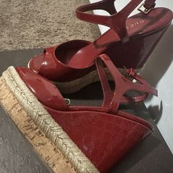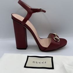 Gucci Horsebit Red Leather Ankle Strap Block High Heel Sandals$325Downey, CA