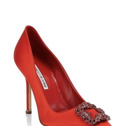 Beautiful Authentic Manolo Blahnik 105 MM Red Satin Hangisi Size 7.5$995Los Angeles, CA