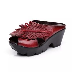 genuine leather sandals women Retro Handmade Ladies Shoes Platform Heels Red Boots Burgundy Black$65Westchester, CA