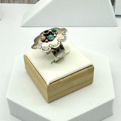 Vintage KC Sterling Silver Ring American Native Mosaic Inlay size # 9$165West Covina, CA