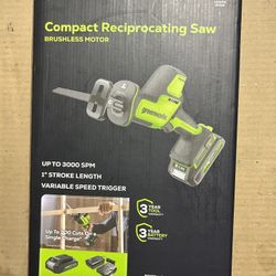Greenworks POWERALL 24V Cordless Brushless 1in Recip Saw with 2Ah Battery and Charger, BRAND NEW $75San Gabriel, CA