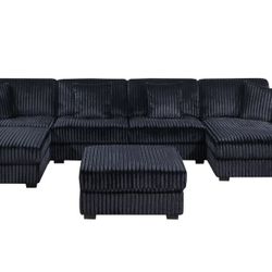 NEW Large U Shape BLACK Chenille Fabric Sectional Sofa and Chaise with Ottoman Set Ashley Style Designer BIG Couch SALE Discount Furniture Warehouse$799Santa Ana, CA