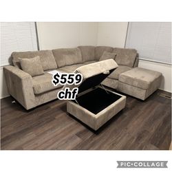NEW Ivory Fabric Sectional Sofa and Ottoman Set Couch Ashley Style White Beige Cream Modern Designer Discount Furniture Warehouse Clearance BIG SALE$479Costa Mesa, CA