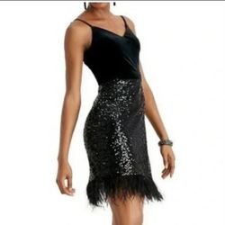 GUESS Black Velvet Feather Trim Sequin A Line Back Zip Dress$55Whittier, CA