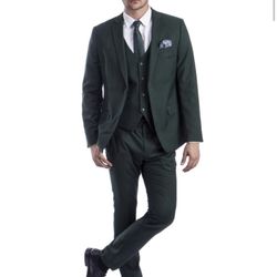 Men’s Premium Slim Fit Hunter Green-Emerald Green Three Piece Two Button Suit with Stretchy Fabric$175Los Angeles, CA