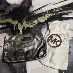 MICHAEL Michael Kors Berkley clutch in python-embossed metallic grey leather with silver-tone hardware. $150Long Beach, CA