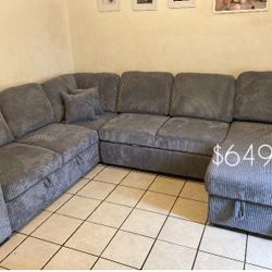 On Sale $659 No Tax ✅X-Large Sectional Sofa With Pullout Bed & Storage Available In Grey Or Dark Grey Corduroy $659Long Beach, CA