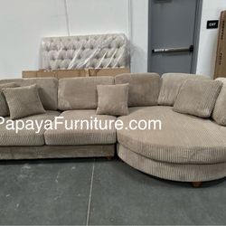 New 125” Deep Seating Comfortable Couch, Sectional, Large Sectional, Corduroy Sectional, Camel Beige Sectional, Brown Sectional With Round Chaise, Sof$549Fullerton, CA