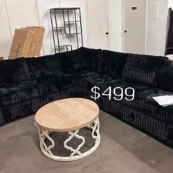 Stylish! Black Sectional Sofa With Ottoman Fur-like Jumbo Corduroy New$529Downey, CA
