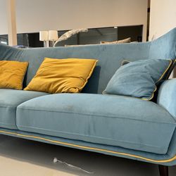 Modern Velvet Sofa – Teal Blue w/ Gold Accent Piping – Like New$825Long Beach, CA