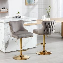 Set Of 2 Gray Golden Velvet Swivel Barstools 19.3″ Wide Adjustable Height [NEW] **Assembly Req** $90City Of Industry, CA
