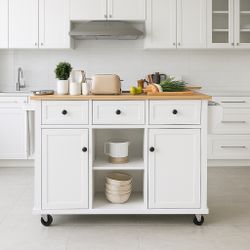 New Rolling Kitchen Island with Drop Leaf Kitchen Island on Wheels with Storage Large Wood Portable Kitchen Islands White with Drawers Cabinet Spice T$140La Mirada, CA