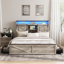 Gray Queen Bed w/ LED & 2 Storage FB Drawers, Dresser, Mirror, and Nightstand$1,329Inglewood, CA