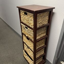 Five Drawer Storage Unit Cherry Wood Wicker Basket$70Los Angeles, CA
