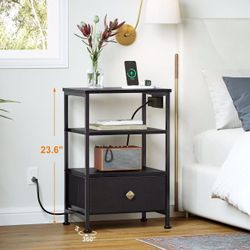 Nightstand with Charging Station, Bedside Table with Adjustable Leather Fabric Drawer, End Table with 3-Tier Storage Open Shelf, Night Stand with Draw$25City Of Industry, CA