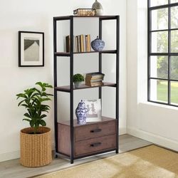 60” H x 24” W Modern Industrial 4-Tier Bookshelf w/ 2-Drawers [NEW IN BOX] **Retails for $249$60City Of Industry, CA