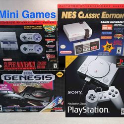 (4) Nintendo NES Classic Edition, SNES Classic, Sega Genesis Mini & PlayStation Mini$475Long Beach, CA