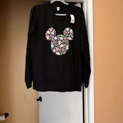 Black Disney Sweatshirt with Floral Mouse Design. New Tags Size 2XL$12Cty Of Cmmrce, CA