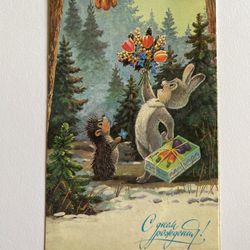 Teddy Bear Bunny Squirrel Hedgehog Double folding longcard Holiday 1991 Zarubin$8Los Angeles, CA
