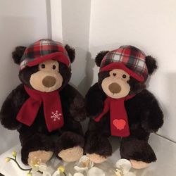Hug Fun Brown Fluffy Teddy Bear 16" Plush Red Plaid Hat Scarf Christmas$19Yorba Linda, CA