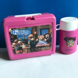 VINTAGE FURSKINS TEDDY BEARS PINK Plastic LUNCH BOX W/ THERMOS 1986$20Long Beach, CA