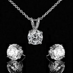1.25CT Round intensely Radiant Diamond Veneer Solitaire Pendant & 4CT Diamond Veneer Stud Earrings all Sterling Silver. 635P150A/635E400$70Los Angeles, CA