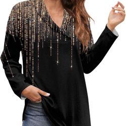 Fall Tunic for Women Long Sleeve Going Out Blouse Graphic Plus Size Crop Tops V Neck Work Fashion Pullover $15Pico Rivera, CA