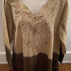 Sweet Lady Colorblock Beige Brown Embellished Embroidered Tunic, size 1X$25Los Angeles, CA
