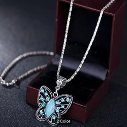 Vintage Turquoise Butterfly Rhinestones Necklace/ Drop Earrings Set Silver Color Charm $15$15Los Angeles, CA